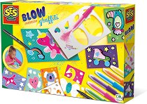 С комплекта от SES Creative малките артисти могат да създадат впечатляващи и цветни графити с лекота. Достатъчно е да поемат въздух и да издухат цвят върху предварително отпечатаните карти с помощта на специалните писалки. Включените шаблони помагат за оформяне на фигурите и създаване на интересни форми, а накрая творбите могат да бъдат подчертани с черния маркер за още по-ярък ефект. Истински малки произведения на изкуството, създадени със забавна и лесна техника. Комплектът е чудесен начин децата да развият своята креативност, фината моторика и усета си към цветовете, докато се забавляват. ...