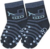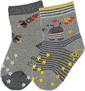 Детските чорапи на Sterntaler са меки, удобни и осигуряват оптимален комфорт при носене. Те обгръщат плътно детското краче и имат гладки шевове и подсилени зони на пръстите и петите. Еластичната лента, в горната им част, прилепва към крака на детето без да го пристяга и държи чорапките плътно. А релефните силиконови квадратчета, от горната и долната страна на стъпалото, осигуряват добро сцепление при ходене и пълзене, и предотвратяват евентуално подхлъзване. Чорапите са изработени от мека материя със състав 80% памук, 15% полиамид и 5% еластан. Памукът, съдържащ се в материята, е обработен по специална технология, при ... |