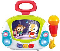 Бъди звездата на шоуто с караокето и микрофона от "Hola". С тях ще можеш да пееш под съпровод на песните, които са включени в комплекта под формата на карти. Може да избираш дали да звучи песничката на английски език или да се пусне само инструментал на песента. Трябва само да натиснеш жълтото бутонче. А когато натиснеш лилавото бутонче с нарисуван микрофон ще можеш да запишеш гласово съобщение или своя песен. За да стане по-забавно, с червения бутон ще можеш да запишеш каквото искаш, в рамките на 2 - 3 секунди, а след това то ще се възпроизведе с различен ефект. Играчката разполага с бутон за включване и ... |