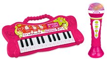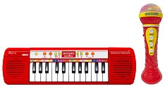Вашето дете ще прояви своите дарби със синтезатора от Bontempi. Той е придружен от гласов микрофон и разполага с 24 клавиша, 16 мелодии и 7 мелодии с акомпанимент. Микрофонът има 16 демо песни, 4 ритъма на барабани, светлинни и звукови ефекти като овации и аплодисменти. Функциите на синтезатора са OKON обучение, запис и възпроизвеждане, контрол на звука и автоматично изключване. Децата ще изпълняват любимите си песни и ще се забавляват. Размерите на микрофона са 6 / 19.5 / 6 cm. Синтезаторът се захранва с 4 батерии AA, а микрофона с 3 батерии AA, които може да закупите отделно. ... |