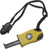 Многофункционалният инструмент има 3 принадлежности, които са подходящи за употреба по време на къмпинг, туризъм, походи и други дейности на открито. Притежава магнезиева запалка, с която ще можете да запалите огън при всякакви атмосферни условия, когато нямате на разположение запалка или кибрит, свирка за сигнализиране при аварийни ситуации и компас за определяне на местоположението и посоката. Инструментът е с размери 3 / 9 / 2 cm и е снабден с шнур за закачане, за да е винаги под ръка, когато ви потрябва. Характеристики: компактен дизайн функционалности: магнезиева запалка свирка компас размери: 3 / 9 / ...