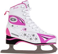 "Miranda" са кънки за лед за момичета, изработени от изкуствена кожа, с розови орнаменти и инкрустации с камъчета. Острието е с 5 зъбци в предната част, а обувката е с ток, което прави кънките подходящи за фигурно пързаляне. Предлагат се с комплект протектори за остриетата за по-голяма безопасност."Miranda" са с меки и топли кънки, с вграден дунапрен и с поларена подплата. Прилепват плътно и сигурно към крака, чрез закопчаване с връзки. От задната страна на кънките има текстилно ухо, позволяващо по-лесното им пренасяне. Характеристики: Обувка, изработена от изкуствена кожа 1.7 mm Мека подплата ... |