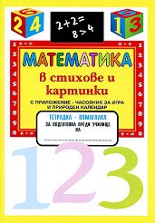 Уважаеми родители,"Математика в стихове и картинки" е необходима за вашите деца преди училище и в първи клас. С нея бързо и лесно те ще научат цифрите, знаците и математическите действия. С приложения картонен часовник - часовете в денонощието, а с попълването на природния календар - промените на времето през четирите сезона. Тази книга е полезна за всички деца, които навлизат в точния свят на математиката. Ако я имат, ще им бъде лесно в училище. Настоящото издание е съвместимо с учебната програма за 2025/2026 г. Ако имате нужда от подвързия за различни формати учебници, тетрадки и учебни помагала, посетете ... |