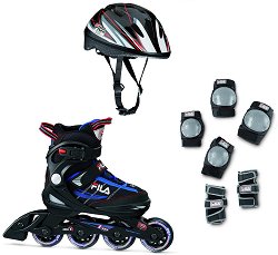 Комплектът "J-one Combo Junior" на "Fila Skates" е разработен предимно за развлекателно каране и е подходящ за начинаещи кънкьори. Той се състои от ролери, каска, протектори за колена, лакти и китки. Ролерите се предлагат в 3 размера, като всеки от тях покрива диапазон от няколко номера. Смяната на размера се осъществява посредством бутон в предната част на обувката. Шасито е монокок, изработено от композитни материали с твърдост на колелата 82А и лагери ABEC 5. Характеристики на ролерите: оптимално дишащи закопчаване: "MicroLock" катарама, връзки и велкро лента за затягане шаси: ... |