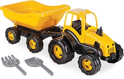 Комплектът от Pilsan е подходящ за деца над 3-годишна възраст. Той се състои от трактор с ремарке, гребло и лопатка. Тракторът има големи гуми, за да може да се движи без проблем през различни терени и участъци. Ремаркето може да се откача и закача. Освен това може да се вдига и спуска, за по-лесно разтоварване. То разполага с място за прибиране на лопатата и греблото. Размерите на трактора са 72 / 27 / 26 cm. ...