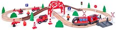 Децата ще се впуснат във вълнуващи приключения с влаковата композиция от Woodyland. Тя се състои от 60 дървени части, с които може да се сглоби релсов път с мост. В комплекта са включени локомотив с вагон, самолет, пожарен камион и пожарна кола. Около релсите могат да се поставят дървета, конуси, знаци за преминаване на влак, светофар и други пътни знаци. Локомотивът може да се свърже с вагона чрез магнит. Той е електрически и децата ще го наблюдават как се движи. Мини фигурките за игра са машинист, пожарникар и цивилни. Малчуганите могат да се впуснат в интересни спасителни мисии като се превърнат в истински герои. Те ... |