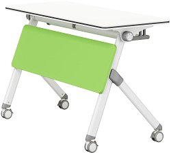 Работната маса Sky от RFG е сгъваема, мобилна и мултифункционална. Подходяща е за учители, ученици, учебни центрове и образователни учреждения. Изработена е с модерен дизайн, класически форми и иновативни функции. Тя има атибактериален и устойчив на надраскване работен плот, изработен от MDF материал с меламинова повърхност. Ъглите на плота са заоблени и обезопасени с PVC кант. Масата има прахово боядисана метална сгъваема конструкция с овален профил в бял цвят. Оборудвана е с 4 заключващи се колелца. Дизайнът ѝ е допълнен с преден панел в зелено. Тя е лесна за съхранение, почистване и поддръжка. Внимание: При ... |