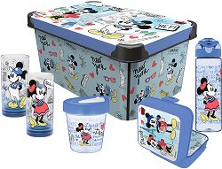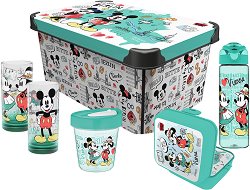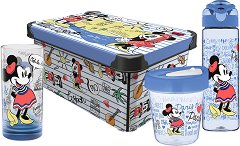 Комплектът е част от серията Мики Маус и приятели, където ще откриете още продукти и аксесоари по темата. ... Комплектът на Мики Маус е подходящ за деца над 3-годишна възраст. Той се състои от кутия за съхранение, 2 стъклени чаши, детска чаша с капаче, бутилка и кутия за храна. Комплектът е изработен от полипропилен и стъкло. Кутията за съхранение е подходяща за съхранение на детските играчки и аксесоари. В кутията за храна, детето може да държи своя обяд за училище или разходка в парка, а в бутилката - сок, чай или вода. Чашата с капаче може да се използва за мляко или какао. Вместимост на елементите: кутия за ... |