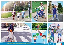 Комплектът включва 5 учебни табла по Безопасност на движението по пътищата за работа с деца във 2. група на детската градина. Темите на таблата са: табло № 1: Улицата; табло № 2: Светофар - мой другар; табло № 3: Улицата не е място за игра; табло № 4: Правила за пресичане; табло № 5: Моят велосипед. Табло № 3 е с размери 66.5 x 46.5 cm. Останалите табла са с размери 66 x 47 cm. Имат лайсни в горната и долната си част. По зададената тема има и задачи, с които да се провери и затвърди наученото. ... |