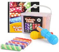 Тебеширите от "Jarmelo" ще зарадват както децата, така и техните родители. Те се мият лесно от всякакви повърхности, не оставят прашни петна и са подходящи за игра на открито. Комплектът съдържа 24 цветни тебешира, 2 държача и удобна кутия тип кофичка за съхранение. Тебеширите могат да се използват както за хартия и стени, така и за рисуване по асфалт и дъски. ... |
