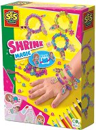 С комплекта от SES Creative вашето дете ще може да направи красиви бижута. Той се състои от 8 цветни молива, розов еластичен шнур, 2 листа магическо термосвиваемо фолио и мъниста. С тях детето ще може да направи различни дизайни за своите гривни. Как става това? Много лесно. Благодарение на цветните моливи, детето ще може да нарисува каквото пожелае върху фолиото. Когато са готови, помогнете на малчуганът да изрежете картинката и направете дупка с помощта на перфоратор. След това поставете дизайните във фурната и гледайте как като на магия, те ще намалят размера си и ще се свият. Когато са готови детето може да ...