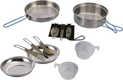 Комплектът съдове за готвене на Frendo е подходящ за туристи. Съдовете са изработени от неръждаема стомана Inox. Те са леки и компактни, което ги прави подходящи за носене в раница. Тиганът служи и за капак за тенджерата. Вместимост и размер на съдовете: тенджерата е с вместимост 1.5 l и размери 19 x 7 cm тиганът е с вместимост 500 ml и размери 18.2 x 3 cm пластмасовите чаши са с вместимост 200 ml и размери 11 x 8 cm чиниите са с размери 15.4 x 3 cm вилиците са с размери 16 x 2.4 cm ножовете са с размери 16.5 x 1.1 cm лъжиците са с размери 16.2 x 3.8 cm ... |