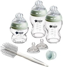 Практичният стартов комплект на Tommee Tippee включва шишета, биберони, залъгалки и четка за почистване. В комплекта са включени шишета с вместимост 150 ml и 250 ml. Те са изработени от полипропилен и висококачествено боросиликантно стъкло, което е устойчиво на високи температури, а това го прави подходящо за стерилизация в микровълнова фурна. Шишетата за хранене имат ергономична форма, която ги прави удобни. А широкият им отвор позволява по-лесното им пълнене и почистване. Те се отличават с това, че имат предвидени отвори на ринга, които позволяват директна стерилизация в микровълнова, само за 3 минути. Шишетата ... |
