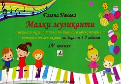 Специализирана школа по пиано, солфеж, теория и история на музиката за деца от 3 - 7 години. ... И тази книжка, както и предишните, може да бъде "преподавана" и от родител, стига той да следва инструкциите. В книжка четвърта децата най-вече ще разширят и задълбочат знанията си за стойностите на нотите и ритмичната структура на нотния текст, в частност размер и такт, прилагайки ги на практика и развивайки уменията си в свирене на пиано. Ще продължават подготовката на нотопис, ще утвърдят и развият знанията си по разчитане на нотен текст на двата ключа - Сол и Фа. Задачата и тук е те да осъзнаят разликата и ... |