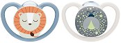 Залъгалките от серията Perfect Match на NUK са създадени с грижа за чувствителната бебешка кожа и естественото развитие на устната кухина. Щитът им разполага с изключително големи отвори, които осигуряват максимален въздушен поток и позволяват на кожата да диша, като по този начин спомагат за намаляване на раздразненията и обривите от слюнка. Те се отличават с това, че фосфоресцират в тъмното, а това ги прави подходящи за ползване през нощта, тъй като са лесни за намиране в бебешкото креватче. Ортодонтичната форма на силиконовия биберон подпомага естественото развитие на челюстта и устата на бебето. Залъгалките са ... |