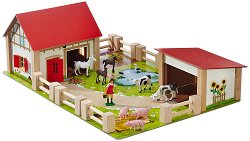 Животът във фермата често се свързва със спокойствие и близост до природата, но освен това денят на фермерите е изпълнен и с много работа, свързана с отглеждането на различни животни и растения. За да може всичко това да се пренесе и в детските игри, от "Eichhorn" са пресъздали умален модел на ферма с фигурки на животни. Така малчуганите ще могат сами да подредят различните елементи от комплекта, а след това да разиграят най-различни сценарии с фигурките. Комплектът съдържа играчки от дърво, които пресъздават 2 дървени постройки и няколко оградки. Освен това в кутията малчуганите ще открият и лист със стикери, ... |