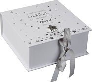 Кутията за спомени е част от колекцията Celebrations, в която ще откриете още бебешки и детски продукти по темата. ... Кутията за спомени на Widdop Bingham е стилно и практично решение за съхранение на най-ценните спомени от първите месеци на вашето бебе. Изработена е от твърд картон, а капакът ѝ е декориран с нежни звездни мотиви и посребрена фигурка на звездичка. Декорацията е допълнена от сребристия сантиментален надпис Twinkle Twinkle little star do you know how loved you are? (Звездичке мъничка, знаеш ли колко си обичана?), който придава емоционална стойност на дизайна. Капакът се затваря със сатенена ... |