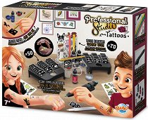 Комплектът е на тема Professional Studio, където може да намерите още интересни продукти. ... Малчуганите ще си направят красиви татуировки с комплекта от Buki France. Те могат да си татуират куче, еднорог, цветя, котка, динозавър, крила, скорпион, птица и много други. В комплекта са включени 4 листа с временни татуировки, машина за татуировки, мастило, флумастери и поставка за включените материали. Временните татуировки могат да се оцветят, а някои от тях светят в тъмното. Децата могат да използват машината, за да си татуират своите любими шаблони. Те трябва да поставят шаблона върху кожата си и да нанесат мастилото. ... |