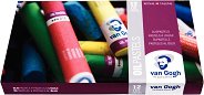 Акрилните бои от серията Van Gogh на Royal Talens са направени от висококачествени пигменти, имат силно оцветяващи свойства и относително гъста консистенция. Плътната боя лесно се нанася с четки и шпатули. Цветовете се смесват добре и се комбинират хармонично. Благодарение на краткото си време на втвърдяване, могат да се наслояват лесно, изсъхвайки с добра до отлична светлоустойчивост и равномерен гланцов завършек. Акрилните бои са подходящи за основи като хартия, картон, дърво, текстил и камък. Могат да се разреждат с вода и да се смесват с различни медиуми. Подходящи са за начинаещи, студенти и художници. ... |
