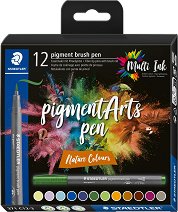 Маркерите Pigment Arts 371 Basic Colours от Staedtler са подходящи за рисуване върху различни видове хартия, оцветяване, създаване на красиви картички за различни поводи, покани и за различни арт проекти. Те са със средно твърд връх тип четка за повече удобство по време на рисуване. Тялото им е изработено от 97% рециклирана пластмаса. Мастилото на маркерите Multi Ink е пигментно и висококачествено. То е на водна основа и предлага устойчивост на светлина без отблясъци, не прозира, изсъхва бързо върху различни повърхности и може да се рисува върху него без размазване, след пълното му изсъхване. Комплектът предлага ... |