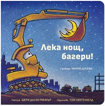 Когато Слънчо се спуска зад планината и отива да спи, всички багери, камиони, кранове и самосвали от строителната площадка спират работа и си лягат, за да си починат и да са бодри и силни на следващия ден. Тази приятна и успокояваща история е любима на всички деца по света, които трудно изключват двигателите си вечер. Мелодично римуваният текст, в превъзходния превод на Мария Донева, е подходящ за четене на глас преди сън както на най-малките (2+), така и на деца в предучилищна възраст. Илюстрации: Том Лихтенхелд. ...