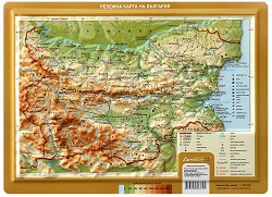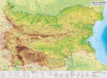 Съдържа: релеф, представен чрез светлосенки, хипсометрично оцветяване, хоризонтали и изобати; хидрография; държавни граници; столица, областни центрове и градове; върхове; проходи; проломи; гранични КПП; летища; пристанища; полезни изкопаеми; надписи на хидрографията, орографията и други; данни за площ, дължина на граници и други; легенда. Картата е двустранно ламинирана. Изработена е от винил с пластмасови лайсни в долния и горния край и шнур на горната лайсна за окачване на картата. Размерите на стенната карта са 140 x 100 cm. ... |