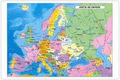 Настолната карта на Европа и Европейския съюз е двустранна, направена от гланциран картон и с размери 23 x 15.5 cm. На нея ще откриете карта на Европа, Европейския съюз и държавите-членки на Европейския съюз. ... |