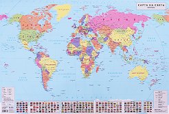 Съдържа: географска мрежа; държави, представени чрез фоново оцветяване и държавни граници; хидрография; столици; основни градове, надписи на хидрографията, знамена на държавите и други; легенда. Картата е с размер: 100 x 70 cm. Подходяща е за дълготрайна употреба. Изработена е за добра четимост от далечно разстояние. Картата е тествана сред 85 ученика, като са взети предвид препоръките относно четене, разпознаване на елементи и правилна съпоставка на показаната информация. Картата е с метални лайсни, на горната лайсна има две дупки за окачване на картата на стена. ... |