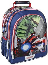 | Ученическата раница разполага с 2 основни отделения, допълнителен прен джоб и 2 странични мрежести джоба. Основните отделения са подходящи за  учебниците и помагалата  на вашия ученик, а допълнителния джоб за  тетрадките  и  несесера. Страничните джобове са снабдени с ластик, те са подходящи за носене на  бутилка  с вода или  чадър. Презрамките на раницата могат да се регулират. С помощта на късата пластмасова дръжка може да се носи в ръка.  Раницата може да бъде комбинирана с ученическите аксесоари от серията "Отмъстителите".   Характеристики на раницата:   подплатени регулируеми презрамки  2 основни отделения  ...  |