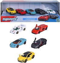 Комплектът е част от серията Lamborghini, където може да намерите още интересни играчки. ... Комплектът от Majorette е мечта за всеки фен на суперколите. Включва 5 официално лицензирани модела, изработени в мащаб 1:64, които впечатляват с изключителен детайл и автентичен дизайн. Всеки автомобил разполага с метален корпус, окачване и подвижни елементи, които правят играта още по-реалистична и вълнуваща. Този комплект комбинира елегантност, мощ и стил, представяйки едни от най-емблематичните модели на Lamborghini – от класическия Countach до футуристичния Sian. Подходящ както за колекционери, така и за деца, той ... |