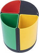 Въртящата се поставка за бюро е функционално и цветно решение за подредба на работното пространство. Състои се от четири отделения в различни цветове - червен, зелен, жълт и черен, които позволяват лесна организация и разделяне на различни принадлежности. Поставката се върти плавно, което осигурява удобен достъп до всички отделения. Подходяща е за всекидневна употреба у дома, в офиса или в училище. Идеална е за съхранение на моливи, химикалки, ножица, чертожни инструменти, лепило и други дребни офис принадлежности. ... |