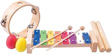 От Woodyland са направили страхотни музикални инструменти. Комплектът се състои от ксилофон с 8 различни тона и две дървени палки, 2 броя маракаси, които имат формата на яйца, дайре и две дървени палки. Ако детето ви обича музиката и песните, то това е идеалният подарък за него. Докато играе с тях малчуганът ще развива своя музикален слух, чувството си за ритъм, както и координация си. Инструментите са реалистични и са изработени от дърво и метални елементи. Дължина на ксилофона: 25.5 см, дайрето е с диаметър ∅ 15 cm. дължина на палките: 20 см ... |