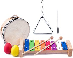 Музикалните инструменти ще помогнат на учениците да разгърнат своя творчески потенциал. В комплекта са включени дайре, маракаси, шейкъри яйца, триангел и чанта за съхранение с дръжка. Децата могат да подобрят своето чувство за ритъм и динамика, докато свирят с инструментите. Комплектът е подходящ за индивидуални и групови занимания. Размерите на чантата са 25 х 19 cm. ... |