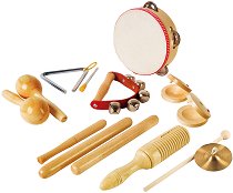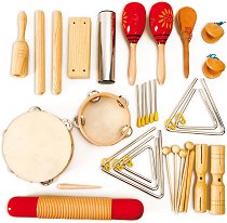 Комплектът предлага на малките музиканти голямо разнообразие от дървени инструменти, с които да се забавляват. Той включва тамбурина, 5 триъгълника, 2 дървени маракаси, голямо гуиро, 2 тон блока (2 тона), тон блок (1 тон), дървено блокче, 2 кастанета, кастанети с дръжка, чифт клавеси и метален шейкър. Има включена чанта с много джобове, изработена от издръжлив плат и с цип, която да използвате за съхранение на музикалните инструменти. Също така когато е отворена, чантата може да се закача за улеснение. Докато играят с комплекта от инструменти, малчуганите ще развиват своя музикален слух и чувството си за ритъм. Чантата в ... |