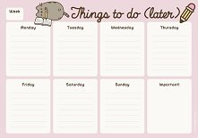 Организирайте времето си и бъдете креативни. Дневният планер за деца Pusheen е практично и удобно решение за организиране на ежедневни задачи и дейности. Може да се ползва в училище или в свободното време. Съдържа 54 лесно отделящи се листове с оригинален дизайн, на които да запишете всичко, което не трябва да забравяте. Характеристики: формат: A5; размери: 14.8 x 21 cm; брой листове: 54. ...