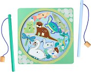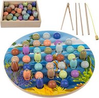 Детската магнитна игра от Eurekakids е подходяща за всеки малък любител на риболова. Тя е удобен, практичен и безопасен начин да пренесем риболова у дома. Играта може да бъде споделена с приятел, благодарение на 2 дървени въдици включени в комплекта. Морските животни са направени от дърво, а за да могат да бъдат уловени от малките рибари имат вграден магнит в средата. Също така на гърбът си имат написани точки, с помощта на които се определя победител. Накрая, който е събрал повече точки, печели. За да започнете игра трябва да изсипете всички животни в долната част на кутията, която е с морски дизайн, който спомага за ... |