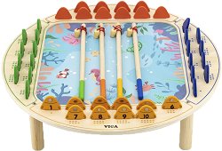 Изпробвайте уменията си на изкусен рибар и примамете водните обитатели с въдицата, така че сами да се закачат на нея. Поканете свои приятели и направете играта още по-забавна. Играта Риболов от Viga Toys е подходяща за деца над 2-годишна възраст. С нея малчуганите ще тренират своята концентрация, ловкост и бързина. Комплектът се състои от игрално поле, фигурки на морски обитатели и 4 въдици. Елементите са изработени от дърво, боядисано с безвредни бои на водна основа, а на краищата на въдиците има вградени магнити, с които да се ловят фигурките. Всяка рибка има цифри в задната част, които ще служат за смятане на точки. ... |
