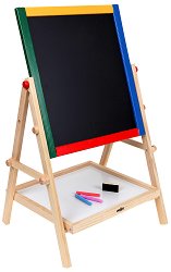 Забавлявайте се заедно с вашите малчугани! Играйте с тях, научете ги да рисуват, да пишат и да смятат! Двустранната дъска за писане на “ Woodyland ” ви позволява всичко това. Едната ѝ страна е черна и може да пишете с тебешири във всякакви цветове. Другата страна на дъската е бяла и е предназначена за писане със специален маркер. Гъбичката за изтриване има компактна форма и дървена дръжка, така че почистването на дъската да бъде лесно за вашите мъници. Не се притеснявайте, че малките палавници ще загубят маркера и тебеширите, защото за тях има удобно дървено рафтче, което е под дъската. Продуктът е включен в ... |